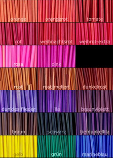Ich habe mich um eine möglichst farbechte Darstellung der Farbtöne in der Farbkarte bemüht. Trotzdem kann es durch die Bildschirmdarstellung zu Abweichungen kommen. Zusätzlich variieren die Farben auch in unterschiedlichen Chargen meiner Lieferanten.