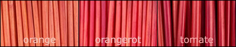 Während das Stroh "orange eher einfarbig ist, ist das "orangerot" eine lebhafte Charge mit vielen unterschiedlichen Schattierungen in orange ind rot Hier bekommen Sie mehrere Farben in einem Bündel.