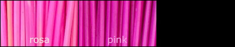 Beide Farben sind sehr intensiv, fast neon. Das rosa ist innerhalb der Bündel etwas unterschiedlicher gefärbt. Einige Halme haben einen Schimmer in Richtung Aprikose.