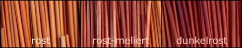 Derzeit sind drei verschiedene Rost-Töne im Sortiment. "Rost" und "dunkelrost" sind eher einfarbig. Die melierte Sorte ist - wie der Name schon sagt - lebhafter gefärbt.